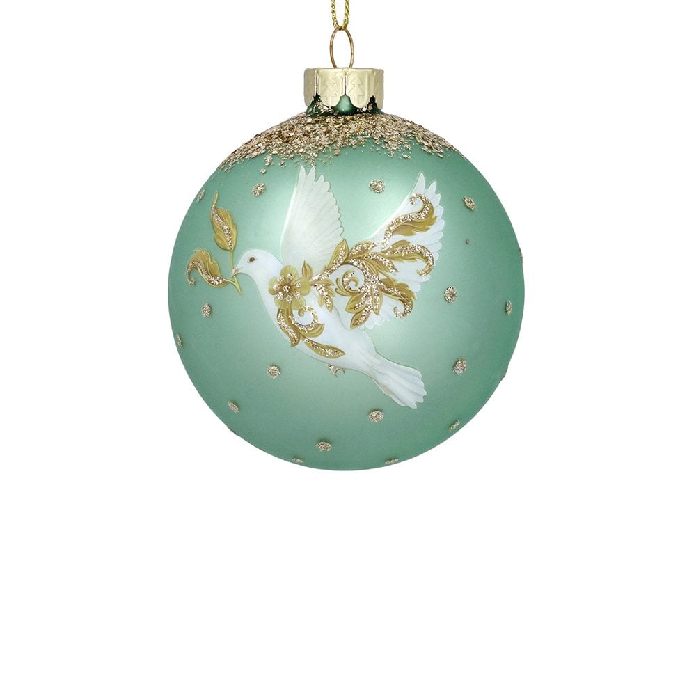 • Matt Pale Green Rococo Dove Glass Ball, (LxWxD) 8x8x8cm
